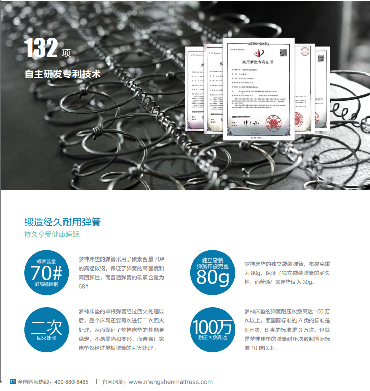 梦神床垫秉持与全球共享优质睡眠的企业宗旨,在人性化的设计基础上,将人体工程学、健康保健科学和美学设计融为一体,大胆尝试新材料、新工艺、新技术,成为中国床垫行业中集研发和制造能力于一体的行业巨擘,为中国床垫行业领先世界作出应有贡献。