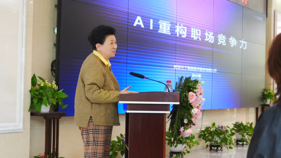 在会议室的分享与交流环节,兰丁董事长孙小蓉介绍了公司在智能医学领域的创新实践和未来规划,并带来了《AI重构职场竞争力》的主题分享,剖析人工智能如何重塑行业生态,并分享企业"技术+场景"双轮驱动的创新路径,引发参与者对科技赋能职业发展的深度思考,让在场的每一位参与者都深受启发。