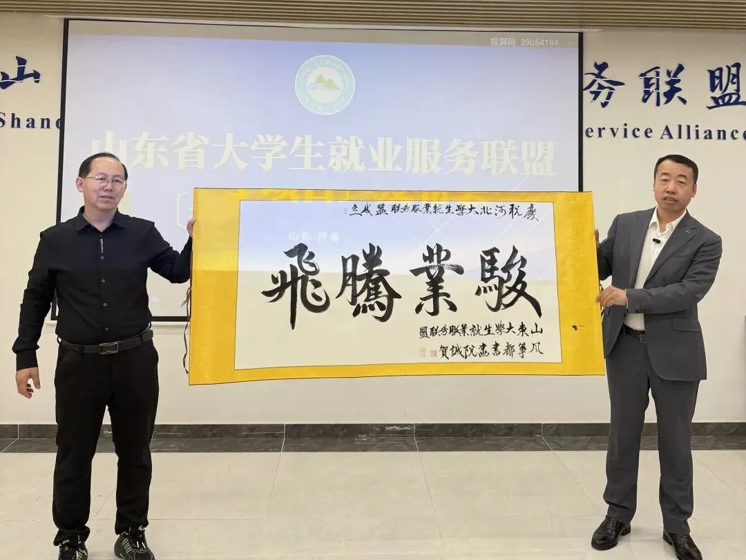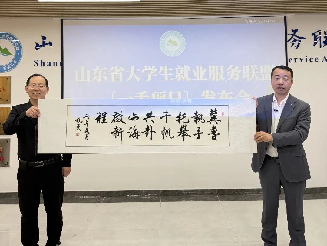 在山东省大学生就业服务联盟2026招商发布会现场,一个温暖而庄重的环节将会议推向高潮——山东联盟与河北联盟互赠礼物,标志着两省大学生就业服务力量的深度联动正式启航。