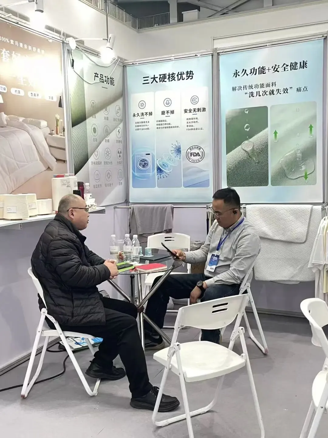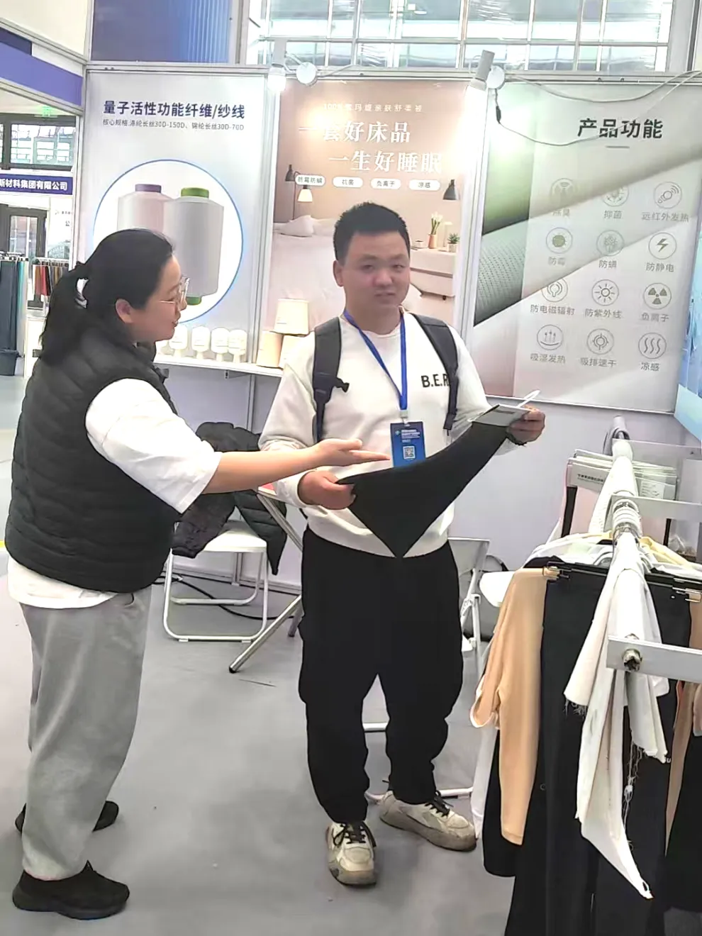 索玛缇以“永久功能·安全健康”为核心,现场全方位呈现了内生式永久功能核心技术,彻底解决传统功能面料“洗几次就失效”的行业痛点,同时凭借永久洗不掉、超环保、安全全抗敏三大硬核优势,收获行业高度关注。