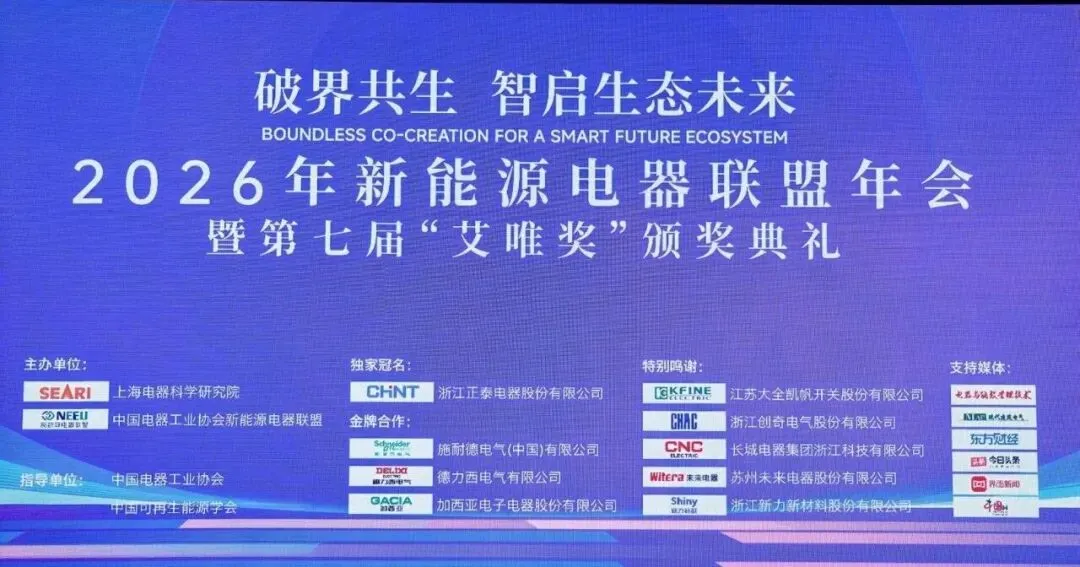 2026年4月10日,以“破界共生 智启生态未来”为主题的2026年新能源电器联盟年会暨第七届“艾唯奖”颁奖典礼在上海隆重举行。浙江创奇电气股份有限公司凭借在低压电器领域的专业化、精细化、特色化、新颖化发展优势,以及在技术创新、精益智造与海外市场拓展上的扎实积累,成功斩获本届“艾唯奖”专精特新出口小巨人企业荣誉。