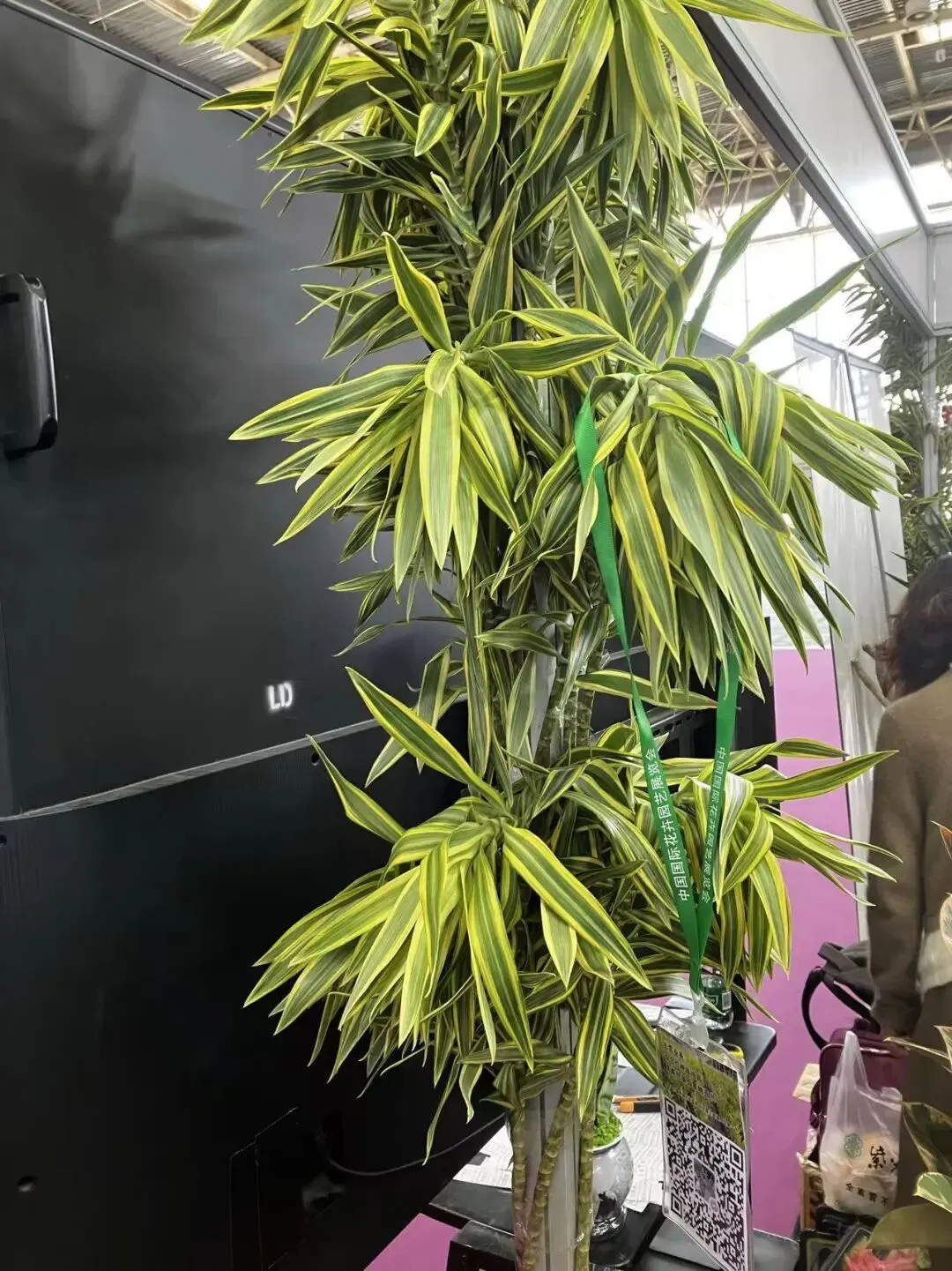 记者在现场看到,新款黄金百合竹的叶面颜色呈现出极其纯正、明亮且稳定的金黄色,相比老款,其色泽更趋近于“赤金”,在展台灯光的照射下熠熠生辉,仿佛一丛被阳光凝固的艺术品。更令人称奇的是其叶态的变化,新品叶片较老款更加平展与舒展,边缘流畅自然,摒弃了原有的局促卷曲感,形似优雅的竹叶,微风拂过,更显飘逸洒脱,极具东方审美韵味。