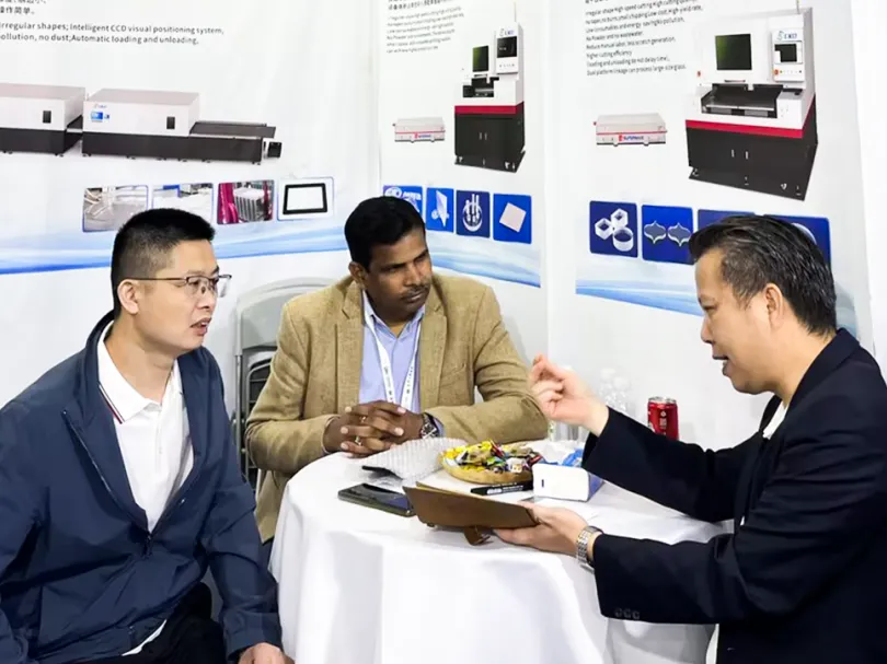 展会期间,红外皮秒激光玻璃切裂一体机进行了多轮现场演示。设备运行稳定,切割效果直观清晰,吸引大批观众驻足观摩与深入咨询。通过实际演示,客户可以清晰看到玻璃切割边缘整齐光滑、无崩边、无微裂纹的优异效果,充分验证了设备在高精度加工领域的领先优势。