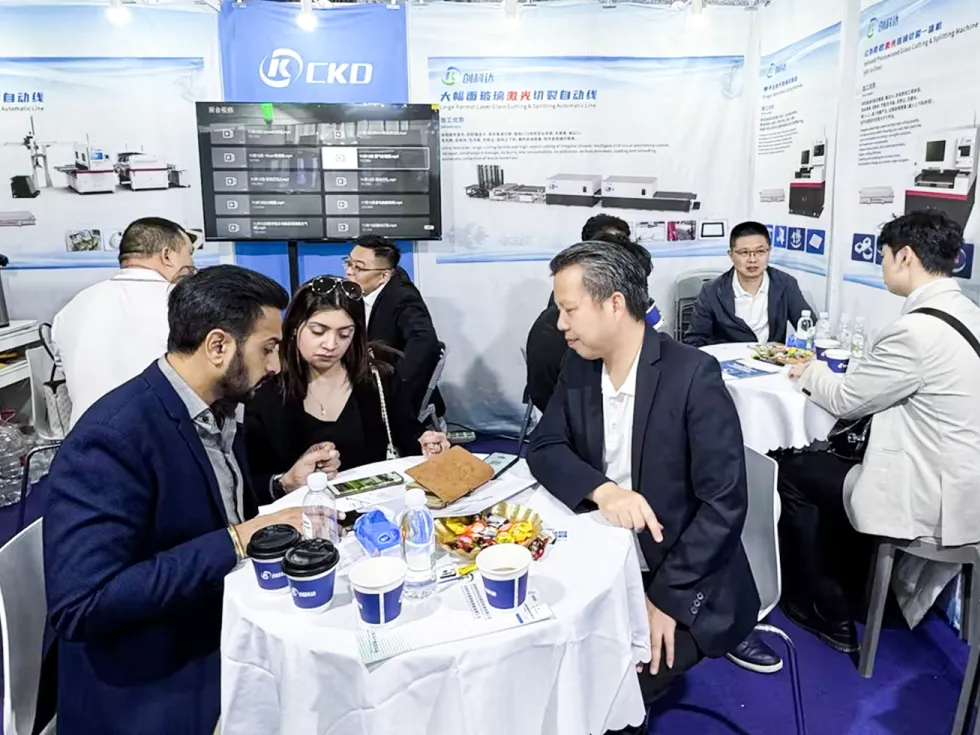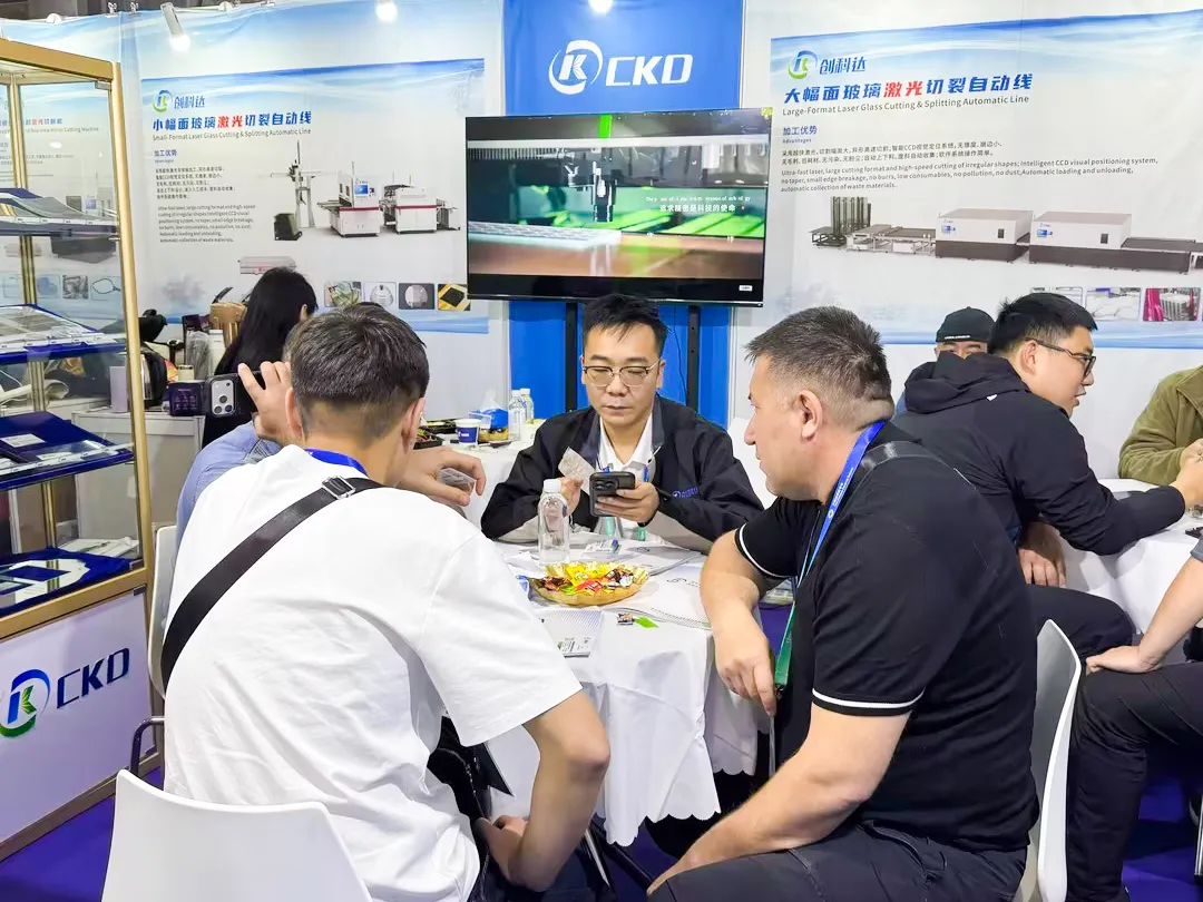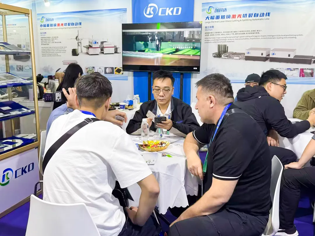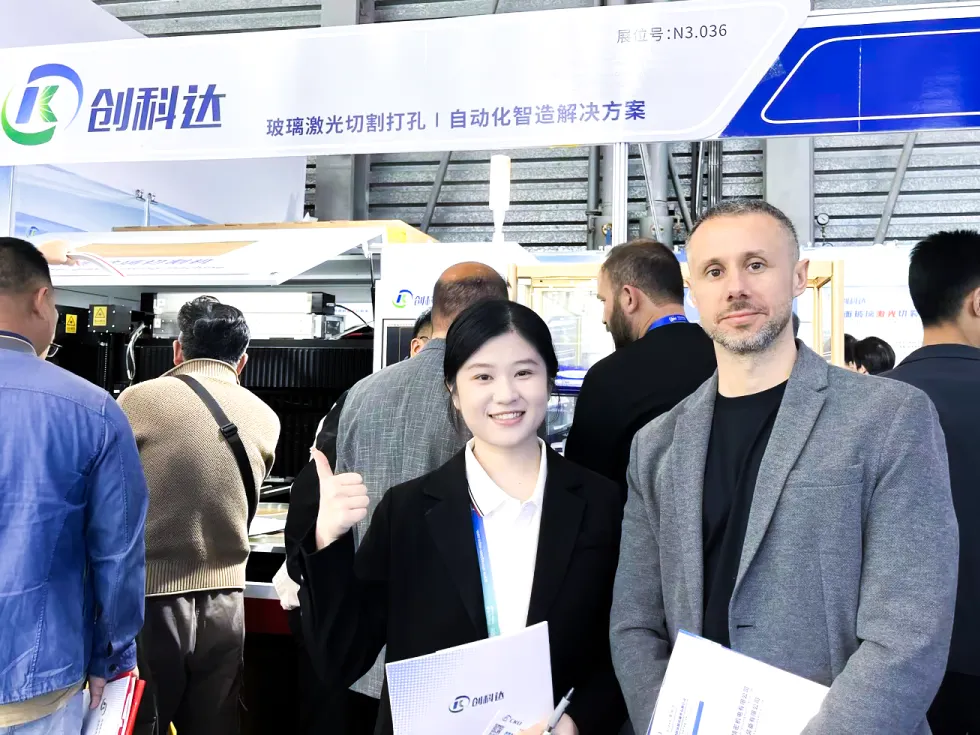 本次展会,创科达重点展出玻璃激光切割、玻璃激光钻孔及大幅面玻璃切裂生产线等多款设备,覆盖多类精密加工需求。凭借稳定性能与优异加工效果,获得现场客户广泛认可。展会期间,创科达团队累计接待数百位新老客户,围绕实际应用与工艺升级深入交流,通过案例分享与多维沟通,进一步增强了客户对技术方案的认知与信任,为后续合作奠定基础。