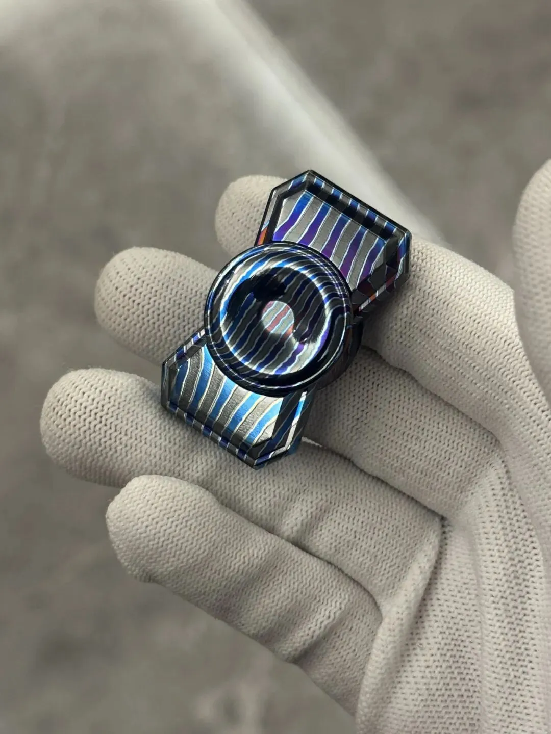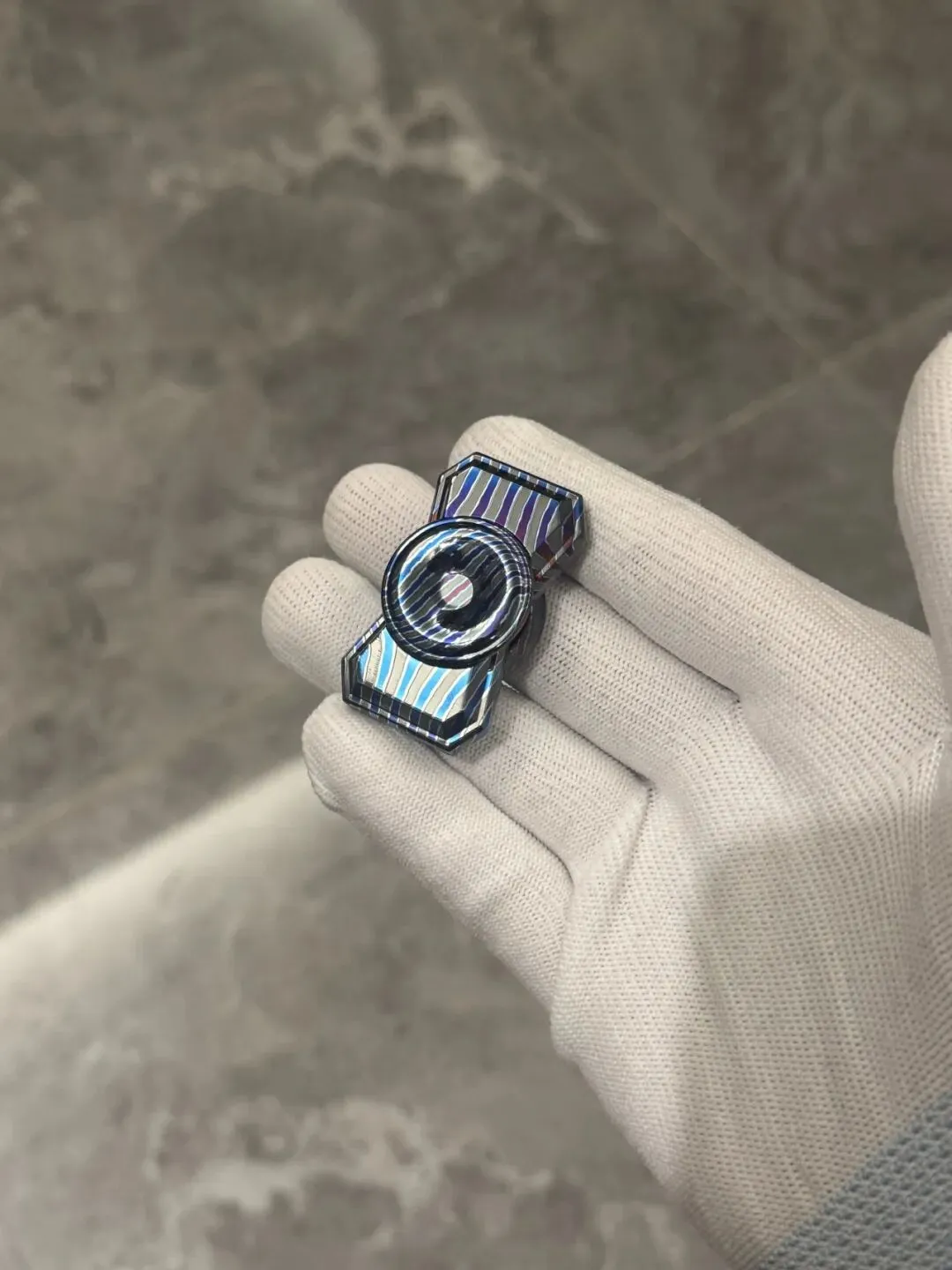锆马mini并没有选择用传统板料直接切割,取而代之选择更高成本的竖切棒料,尽可能使主体与对锁的纹路相似。也没有在此基础再加CD纹,个人审美锆马就应该更简约,不需要多余的细节去刻画。干净的抛光烤色就足以显示料子的美感。