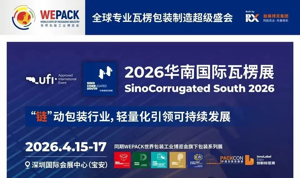 作为透视全球瓦楞行业发展格局,洞见行业发展新趋势的业界盛会,WEPACK世界包装工业博览会旗下包装系列展之一2026华南国际瓦楞展将于2026年4月15-17日在深圳国际会展中心(宝安)举办。