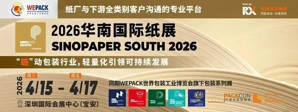 作为透视全球包装行业发展格局,洞见行业发展新趋势的业界盛会,WEPACK世界包装工业博览会旗下包装系列展之一2026华南国际纸展将于2026年4月15-17日在深圳国际会展中心(宝安)举办。