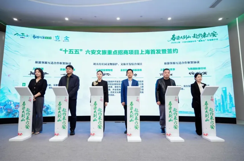 推介会上,发布了裕安区文旅招商项目,安徽飞燕旅行社与上海春秋旅行社现场签约,达成战略合作;裕安区特色民宿、景区景点、研学基地及旅行社代表也全程积极参与,与上海旅游市场精准对接,推动两地文旅客源互通、线路共建、优势互补。