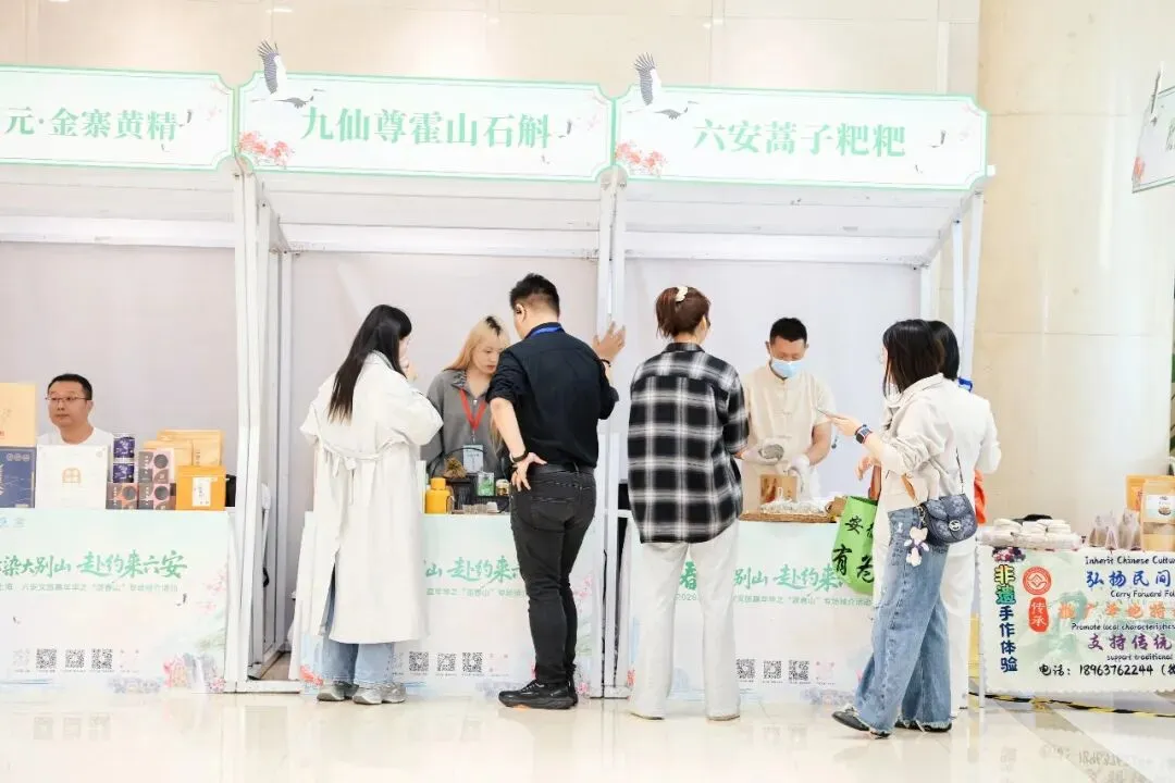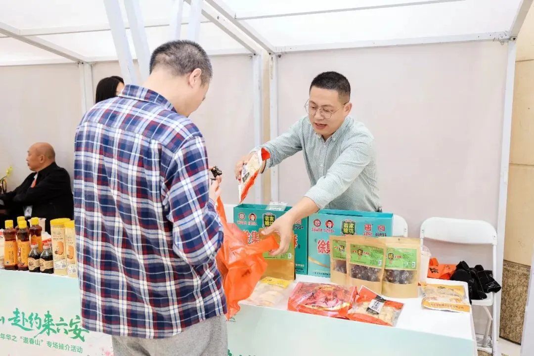 推介会会场外,特色展销专区,裕安区文旅局党组书记、局长化身文旅推介官,现场向与会嘉宾逐一介绍六安瓜片、徐集花生糖、蒿子粑粑等裕安特色非遗产品与美食,展现裕安深厚的非遗文化底蕴与文旅特色。同时,工作人员还通过发放裕安文旅手绘地图、宣传彩页等方式,多角度推介裕安文旅资源。