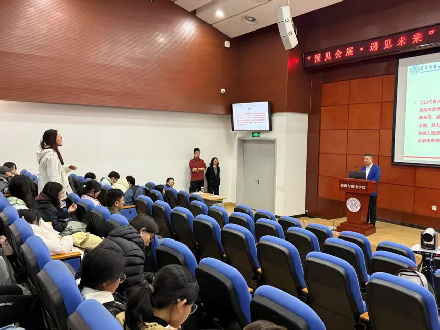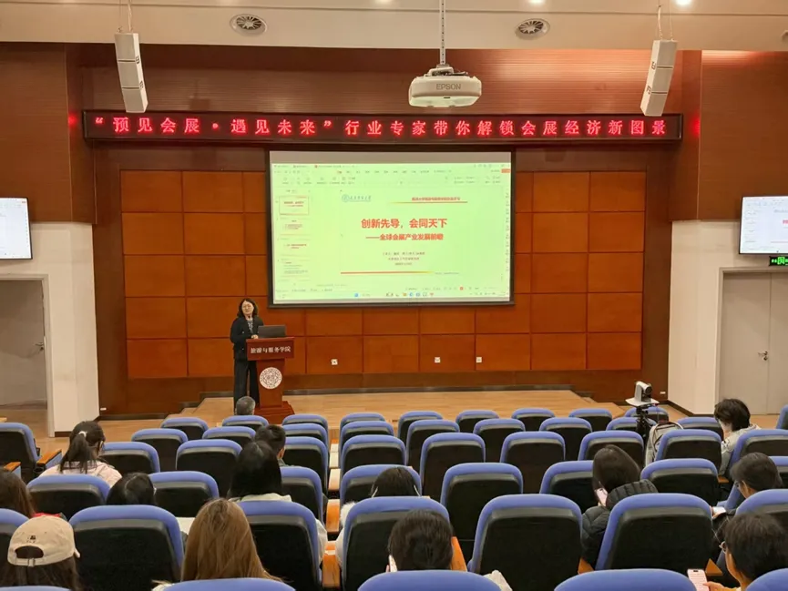 (通讯员 刘悦 李米 侯嘉祺)为拓展专业视野,增强对会展行业前沿现状的了解,2026年4月9日,“预见会展·遇见未来”行业专家分享讲座在旅游与服务学院135报告厅顺利开展。本次讲座由学院王菁娜教授主持,特别邀请天津商业大学会展研究所所长杨琪副教授主讲,采用线上线下同步开展的形式,吸引了来自四个学院的50余名学生及家长参与。