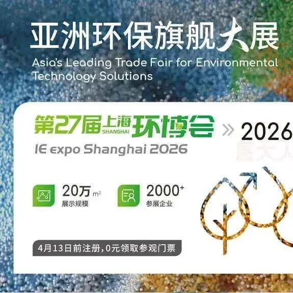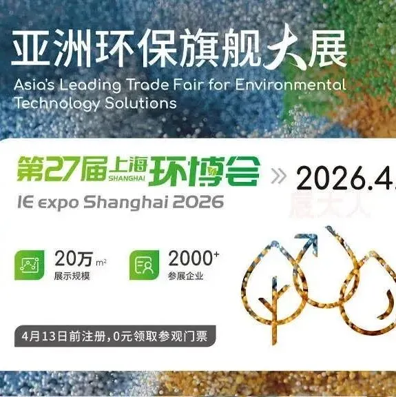 2026第27届中国环博会上海展(简称:#上海环保展),定于2026年4月13-15日,在上海新国际博览中心隆重举行!展会覆盖水处理、大气治理、固废资源化、环境监测等传统污染治理板块,今年我们更重磅聚焦于再生资源、无人环卫、人工智能、碳捕集、氢能等前沿赛道。