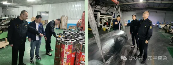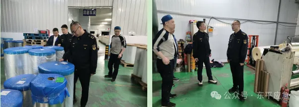 在山东统海包装材料有限公司,检查组聚焦包装生产全流程高风险环节,详细查看生产设备运行维护、危险点位管控情况,调阅隐患排查治理、设备保养等台账记录,针对夜间生产人员易疲劳、监管易松懈等特点,重点检查岗位操作规程执行、班前安全提醒落实、应急器材配备与摆放规范性,现场指出问题隐患并提出整改要求。