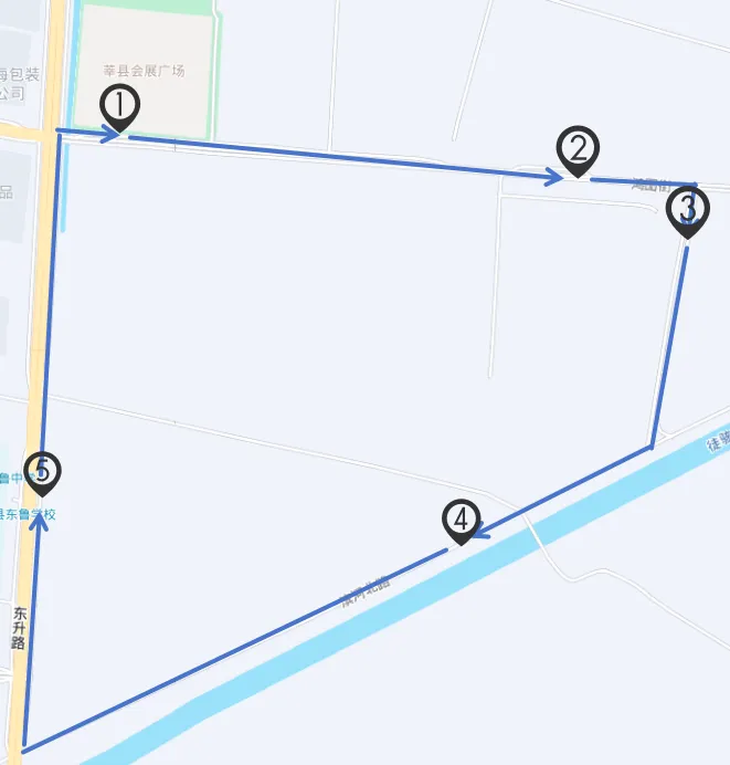 运行线路:路线全长5公里。运行线路:路线全长5公里。①会展广场正门-②鲁西地展园(北门)-③科技成果转化基地-④京阳示范园(东门)-⑤京阳示范园(西门)-①会展广场。