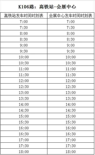 接站时刻:7:40、8:40、9:20、10:30、11:00、11:40、13:40、15:00、16:30、17:00、18:00(会展中心至高铁站往返发车)