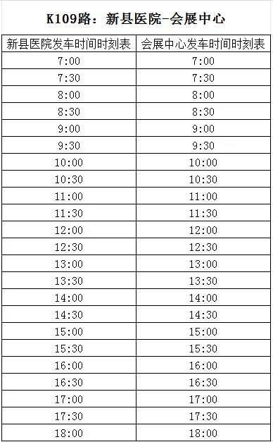 3、K109路(新县医院⇌会展中心)