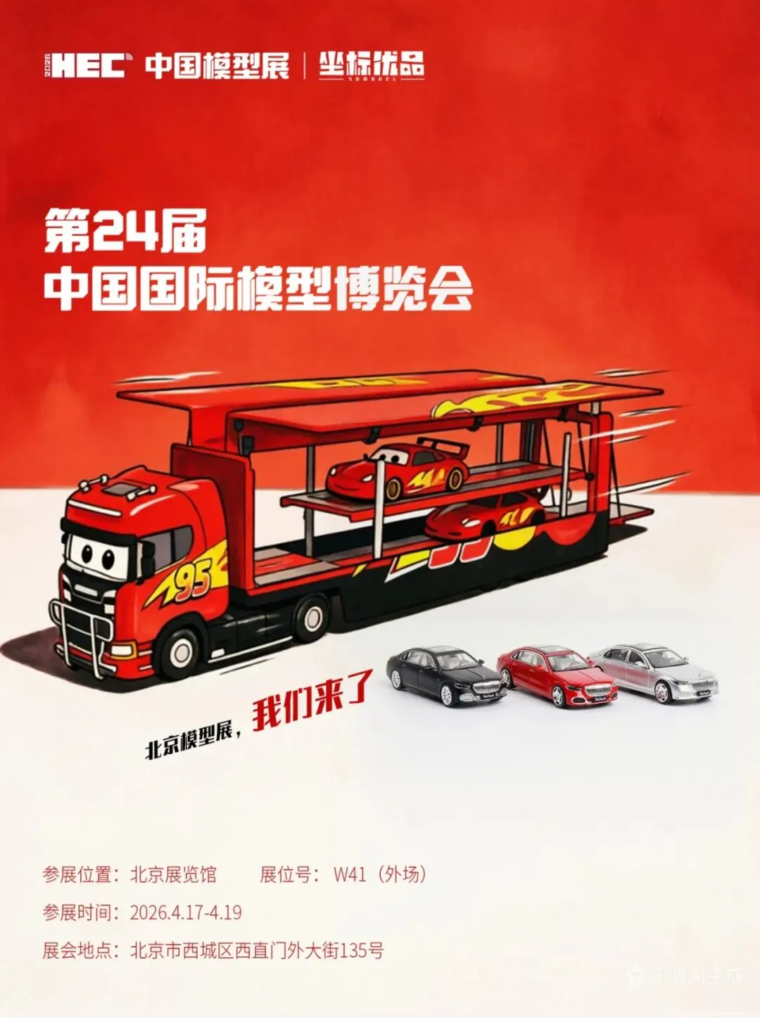 坐标新闻 2026 HEC 中国国际模型博览会即将于 4 月 17—19 日在北京展览馆拉开帷幕。作为展会官方合作媒体及参展商,坐标优品将携满满诚意亮相,与同好们一同感受车模收藏的魅力。首先了解我们本次的位置及布置,接着重点看本次我们带来的两款展会限定 / 首发合金小车,现将具体详情向大家正式公布。