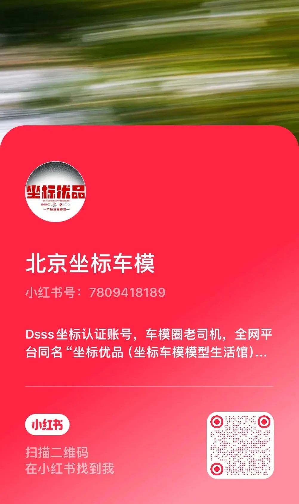 欢迎和感谢大家关注坐标优品的小红书 & 抖音 & billibili 频道!展会实时视频、重点产品实拍、每日新鲜车讯,车模文化感受,坐标优品频道持续更新。