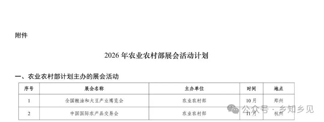 经农业农村部常务会议审议,现将《2026年农业农村部展会活动计划》予以印发,并就有关事宜通知如下。