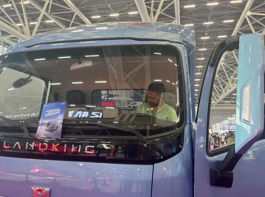 飞行器之外,展区内的几辆轻卡也赚足了人们的眼球。“我们这个蓝擎纯电车型目前使用的是比亚迪96度电池,电池位于车架中间,给两侧预留了空间。其次,我们开发的新款驾驶室,不像传统的油改电商用车那样保留进气格栅,外观上更加大气漂亮。同时还有悬浮MP5大屏、多功能方向盘和定速巡航等作为基准标配。”潍柴新能源商用车有限公司海外产品经理向记者介绍。