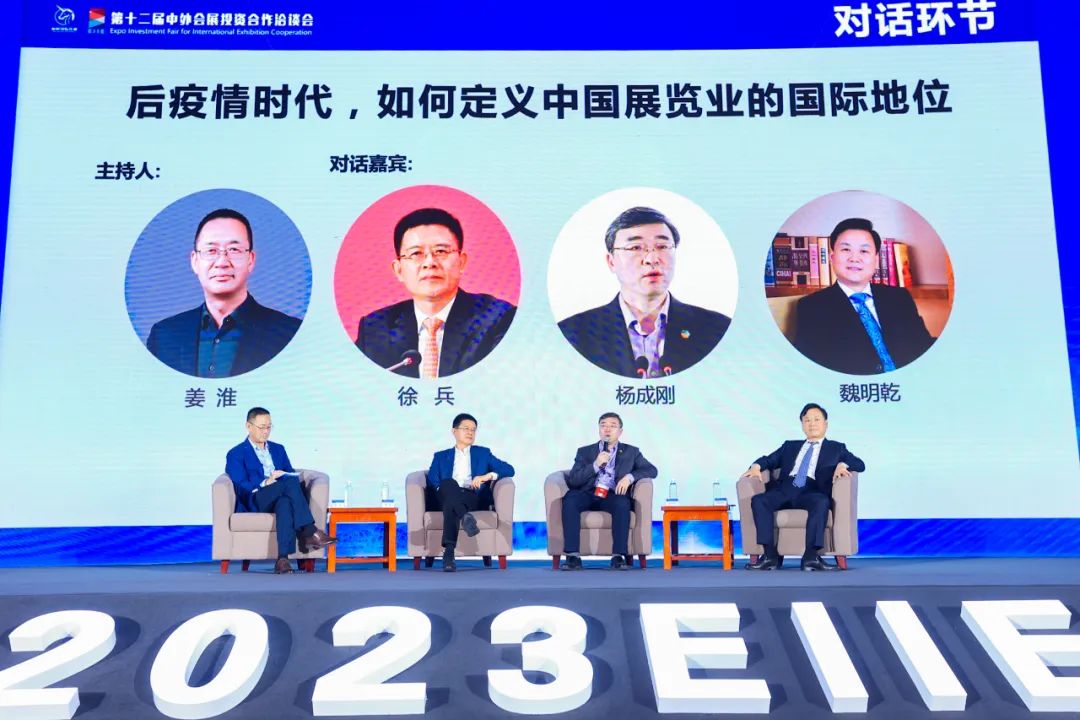 另外,今年开幕式上还举行了一场高端对话,在中国会展经济研究会副会长兼秘书长姜淮的主持下,中国对外贸易中心副主任、中国对外贸易中心集团有限公司董事、副总裁徐兵,中粮会展(北京)有限公司董事长杨成刚,北辰集团副总经理、首都会展集团党委书记、董事长魏明乾进行了一场巅峰对话。四位行业领军人物围绕“后疫情时代如何定义中国展览业的国际地位”这一主题,针对疫情三年中国会展业国际影响力的变化、与欧美等会展强国之间的差距、当前国内举办的国际化展会的国际展商恢复情况和特点、国内外会展同行的合作形式变化等话题展开了深入探讨。
