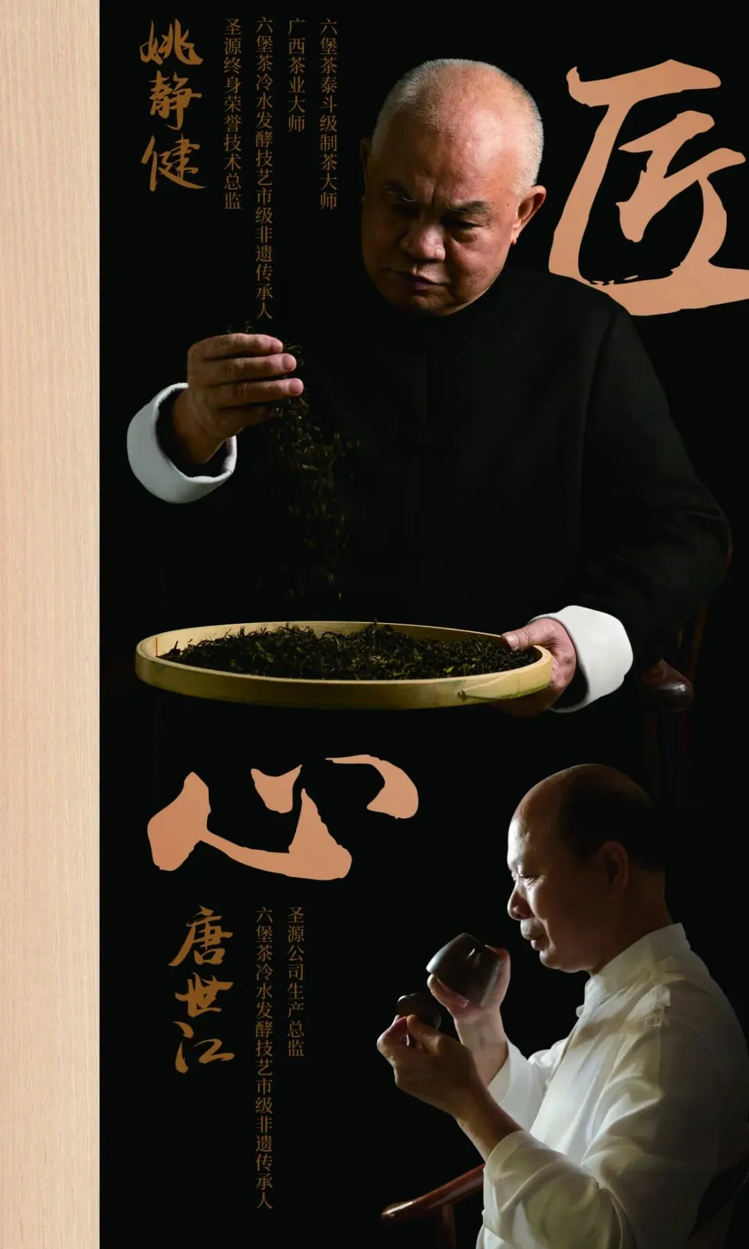 圣源茶业始于2008年,秉承"承古纳今,传承发展"的品牌理念,在广西茶业大师姚静健与非遗大师唐世江、韦燕娟等领衔的技术团队带领下,坚持“双蒸紧压、冷水发酵、三仓陈化”等核心工艺,将传统六堡茶制茶技艺与现代茶产科技相结合,相辅相成,以行业高标准保障六堡茶生产与高端品质。
