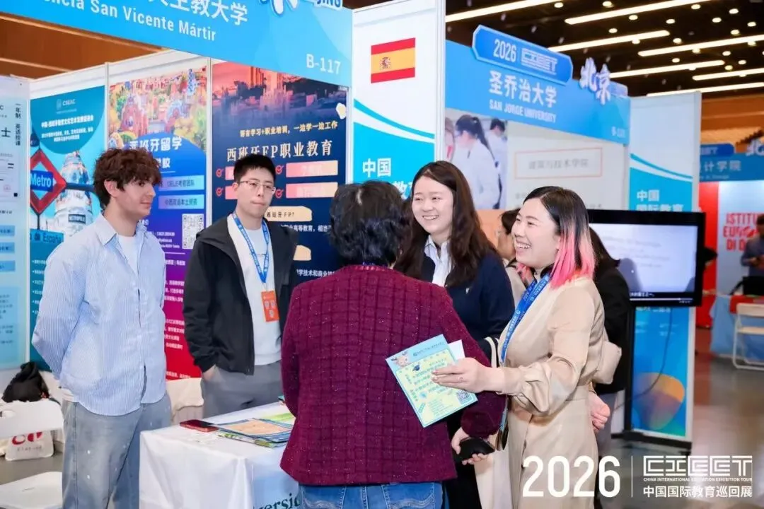 2026 年(第二十二届)中国留学论坛暨第三十一届中国国际教育巡回展在北京国家会议中心举办。西班牙乌蘭语言学校、中西文化艺术发展促进会、西途国际三方机构联合参展,与中国(教育部)留学服务中心王大泉主任、夏建辉副主任,以及西班牙驻华使馆教育处奥维迪奥・霍雷奥・图埃罗顾问深入交流,共同推动西班牙 FP 职业教育项目规范化落地,助力中国学子拥有更多元、更稳妥的国际化升学与就业路径。