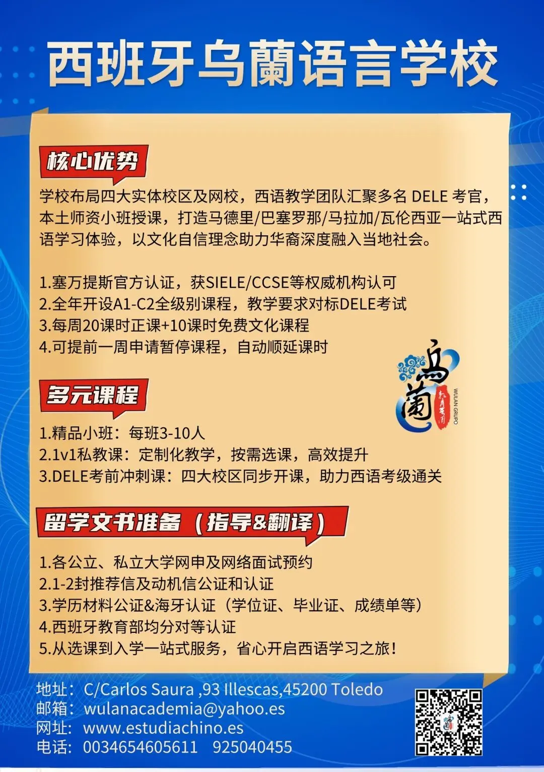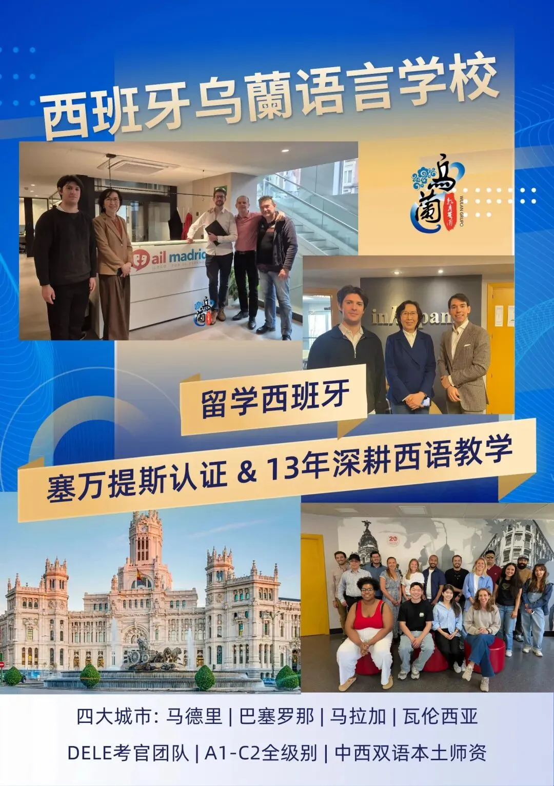 西班牙乌蘭语言学校、中西文化艺术发展促进会和西途国际发挥各自在语言教学、文化交流、国际项目运营的优势,为学生提供: 西班牙语培训 → 院校申请 → 签证办理 → 境外安置 → 实习就业指导