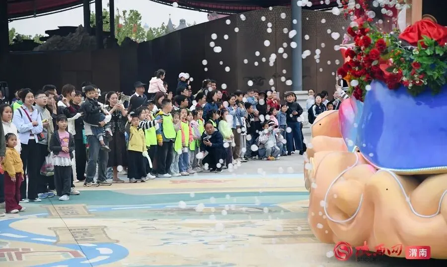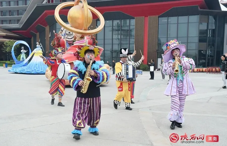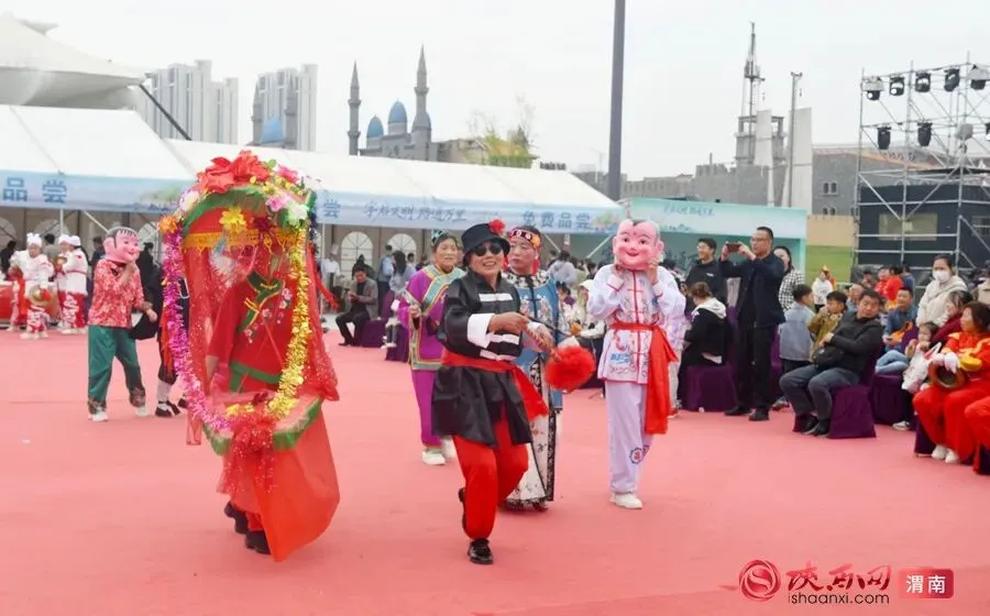丝路遇非遗,舞台竞风华。流动舞台区氛围最热烈,“擂台对决”吸引大量游客观围。第一轮【鼓乐之战】,白水传统锣鼓与波斯舞姬同台竞技;第二轮【腔调之争】,黄河老腔与融合高科技的丝路之声带来视听盛宴;第三轮【绝技之战】,渭南非遗绝活与丝路舞韵惊艳对决。三轮结束后,全体演员呈现“万国社火大巡游”,渭南非遗与异域风情融合,将现场氛围推向高潮。
