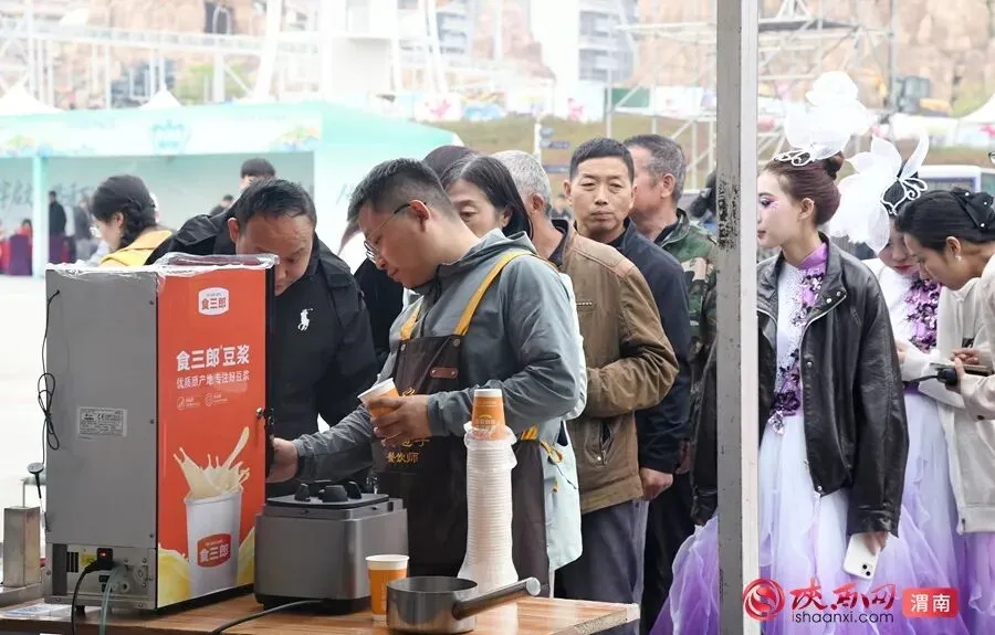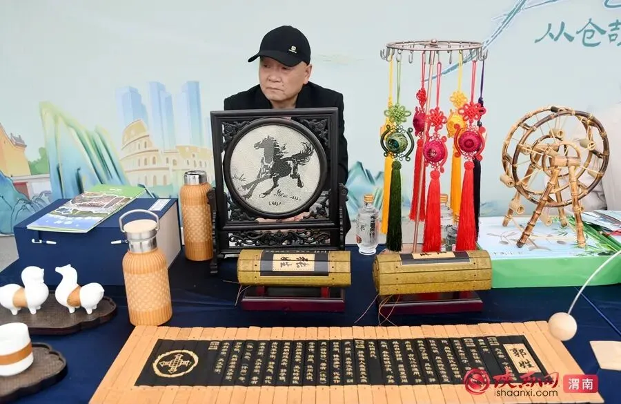 赏四圣文化,品白水风物。作为现场最具烟火气的打卡地,“白水有礼”沉浸式特产展销区以“四圣馈赠”为灵感,通过视觉与互动体验让特产“开口说话”,墨韵黑、琥珀金、青翠绿主色调错落有致,四大主题展区人气爆棚。字圣展区内,游客亲手拓印仓圣鸟迹书感受文字起源魅力;酒圣展区里,讲解员引导游客免费品鉴杜康酒,传递千年酒文化;果乡展区内,白水苹果及加工品琳琅满目,游客试吃后纷纷称赞;非遗展区中,“三转席”模型与特色美食吸引游客观赏品尝,感受白水民俗烟火气。