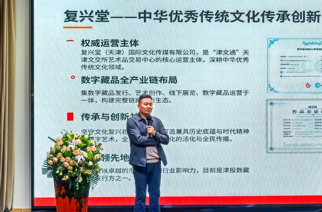 本次论坛汇聚政、产、学、研各界权威专家,紧扣京津冀一体化发展大局,围绕创汇景泰蓝非遗活化、京津冀民间文艺协同传承、版权保护数字化、跨区域文化出海、艺术展览数智化运营五大核心议题展开深度研讨。天津数据研究院津投数藏负责人潘宁,天津市版权协会副秘书长曹凡等嘉宾,分别就数字技术赋能文化新质生产力、京津冀版权一体化服务体系、民间文艺数字确权与维权、跨区域文化资源整合传播、中华文化海外推广路径等主题作专业分享,为京津冀文化产业协同转型、一体化高质量发展提供权威思路与实践方案。津文通项目负责人、复兴堂(天津)国际文化传媒有限公司总经理郭雪东,围绕文化数字资产规范发行、非遗数字化赋能京津冀文化出海作专题发言,以实际案例阐释数字资产如何助力京津冀优秀文化轻量化、高效率走向全球。