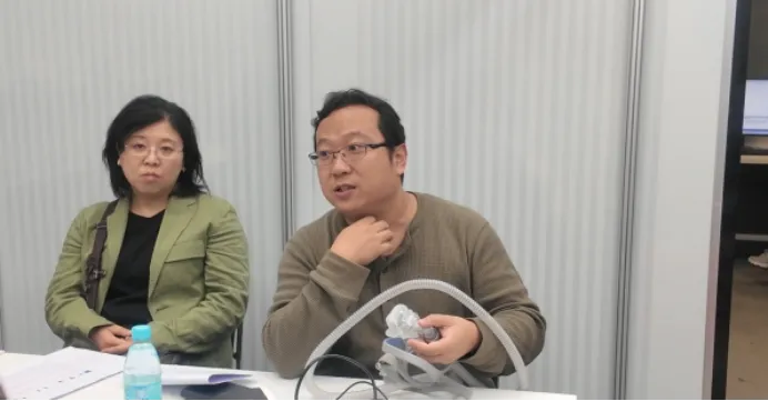 会上,国贸先锋工作室负责人吴霜老师向客户介绍了工作室的冷感材料和AI智能止鼾枕产品,并就产品优化方向进行了深入交流。客户代表柳熙对AI智能止鼾枕的技术细节和市场潜力表现出浓厚兴趣,并针对产品的电力需求、WIFI连接问题以及外观细节提出了具体建议。