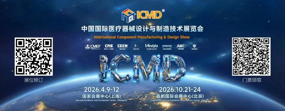 声明:①本公众号原创发表的文章,任何个人、媒体、网站如需转载,须在文首位置注明转自“ICMD医疗器械设计与制造技术展”。②本公众号所发表内容注明来源的,版权归原出处所有,与本公众号立场无关。且此篇文章受众仅为医药、医疗等健康产业专业伙伴,仅供医学药学专业人士使用,不针对普通消费大众,在参考文章数据时应自行甄别,若因依赖文章数据而产生任何损失或纠纷,本平台不承担任何法律责任。如有侵权请联系器械小I ,另外如果您对ICMD官方微信平台感兴趣,想要投稿或寻求合作,或者您有任何的意见与建议,也可以联系小I【010-84556587】。