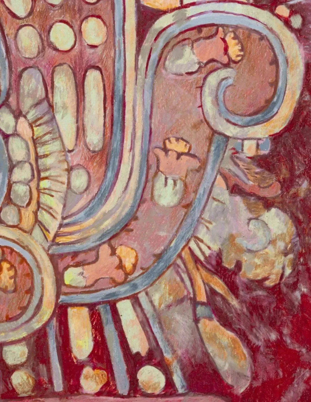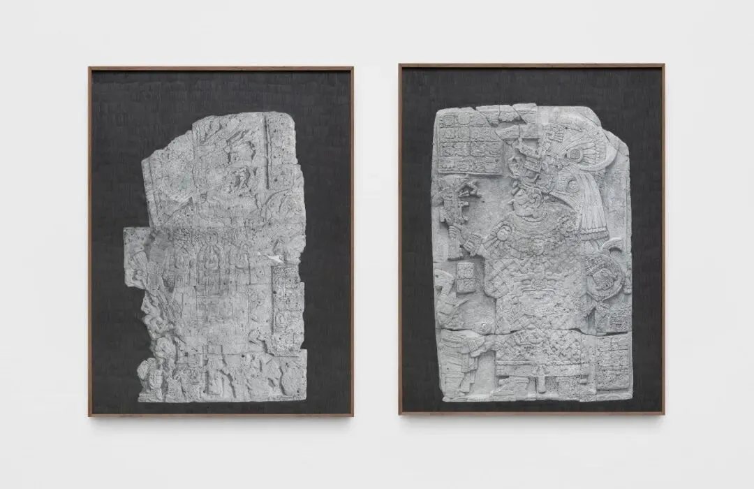 展览还包括两幅大型玛雅石碑绘画,描绘了埃尔佩鲁-瓦卡(El Perú-Waka’)的统治者:卡贝尔夫人(Lady K’abel,34号石碑)和基尼奇·巴拉姆二世(K’inich B’ahlam II,33号石碑)。这两个纪念碑最初作为危地马拉某建筑群的一部分相对而立,后被拆分提取,目前分别收藏于俄亥俄州克利夫兰艺术博物馆和德克萨斯州沃斯堡金贝尔艺术博物馆。波拉斯-金的绘画让它们再次相对,在画廊内重构了它们最初拥有的空间关系。