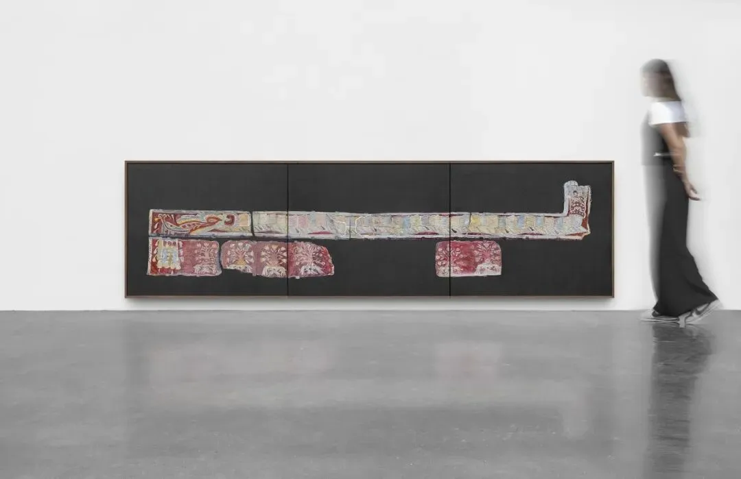 在《连根拔起》(Uprooted,2026)系列中,波拉斯-金描绘了这些碎片并将其聚集展示,根据它们最初的位置将其安置在贴近地面的高度,使画廊空间复制了它们被抽取出的原始建筑条件。