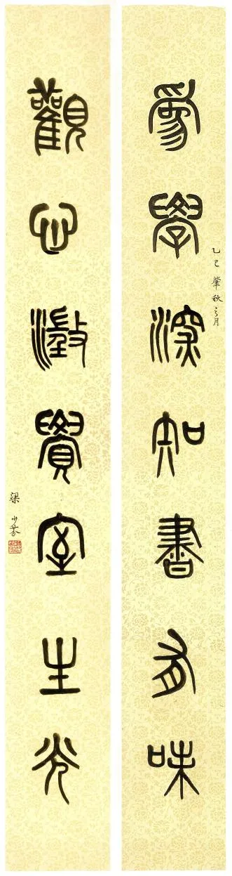 为学观心联,梁少芬,书法(纸本),12x92cm(2幅),2025年。