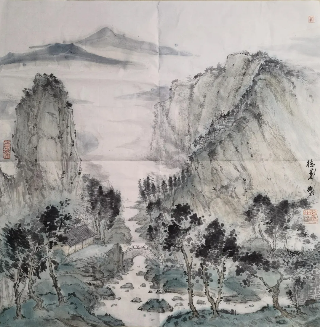 崇山叠翠,苏德华,中国画(纸本),68x68cm,2020年