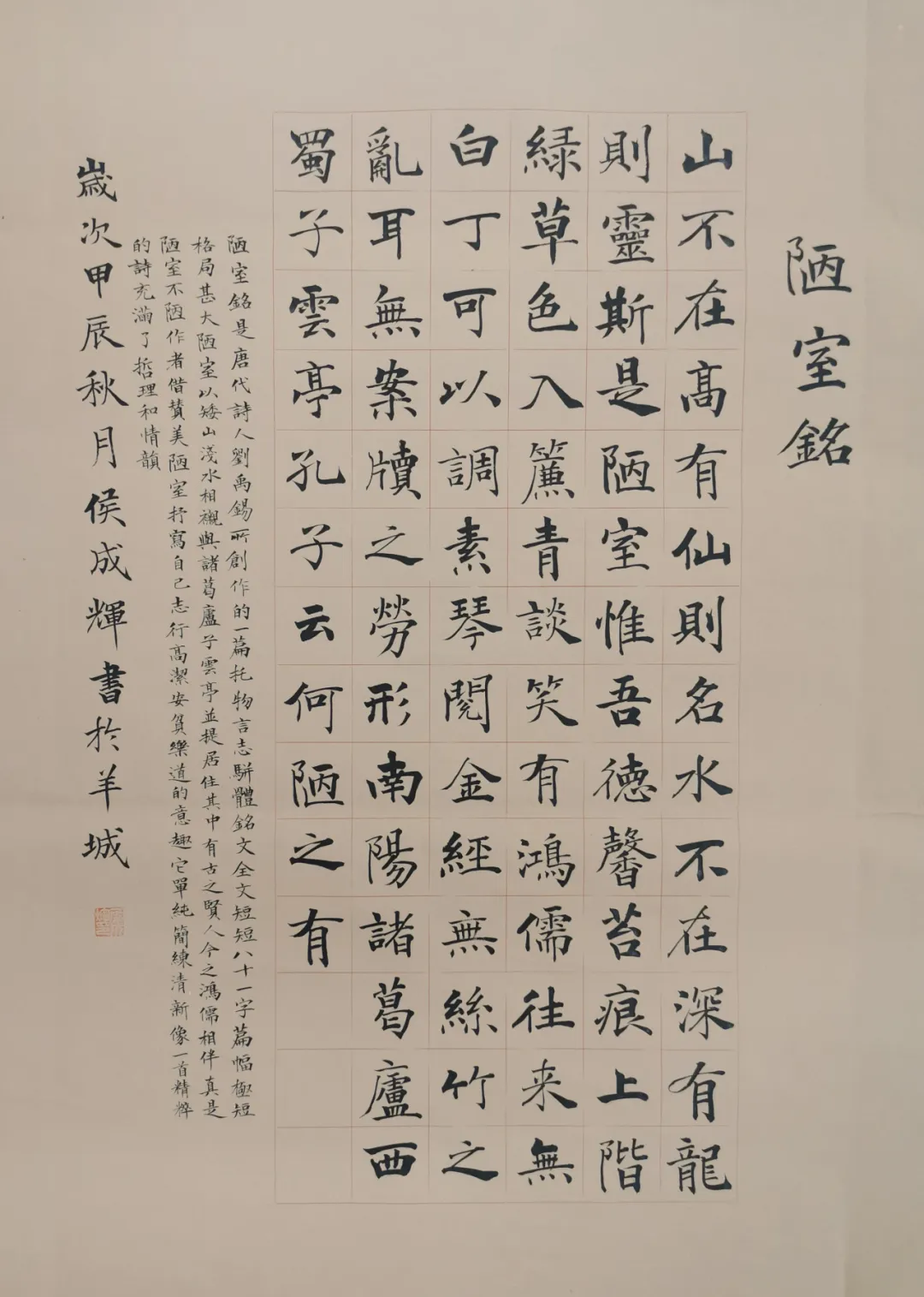 陋室铭,侯成辉,书法(纸本),50x69cm,2024年