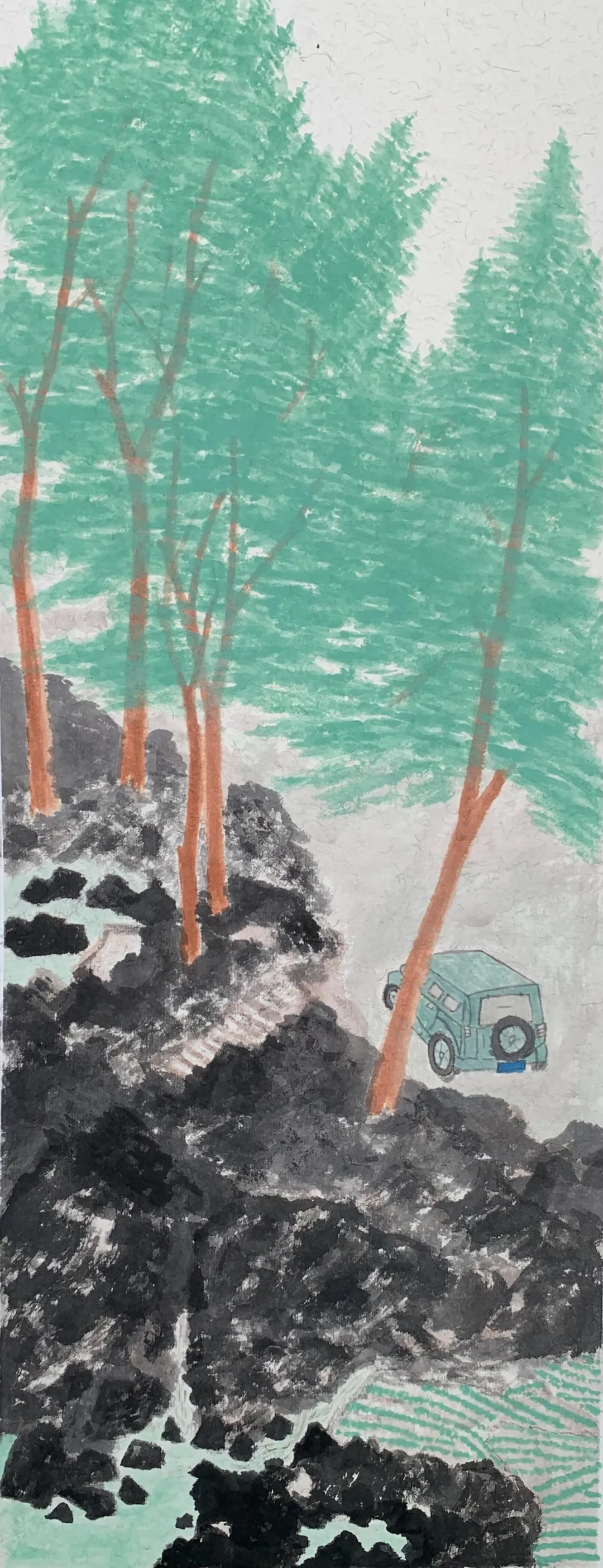 看风景,方知均,中国画(纸本设色),48x38cm,2024年