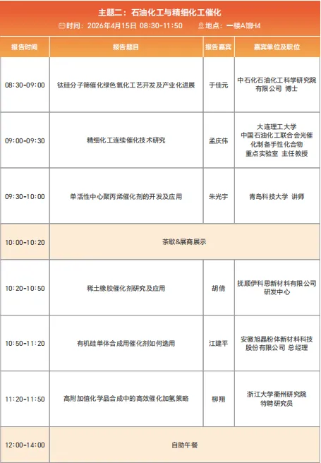 主题二、 石油化工与精细化工催化