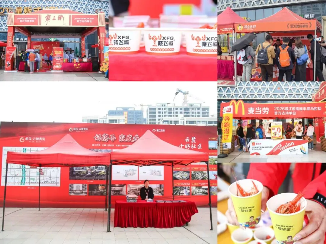 领物博览会现场,体育赛事与商业品牌实现精彩联动。冠名赞助商农发集团,以及龙发・云麓书苑、晓飞歌、虎力等一众品牌悉数亮相。现场汇聚万达广场运动装备、特色美食、酒水饮品等多元体验场景,各品牌的特色试吃体验区将赛事活力与潜江本土烟火气完美融合,既为参赛跑者提供了充满特色的赛事补给和现场体验,也让潜江特色品牌与城市魅力借助“潜马”平台得到充分展现。