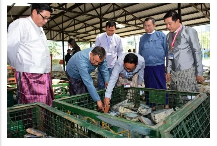 近期,缅甸在内比都玛尼雅达纳玉石大厅举行为期六天的珠宝交易会。本届交易会面向本国商人,交易以缅币结算。自然资源与环境保护部部长及副部长视察了展品。交易会将以公开招标方式出售286件宝石及3,695件翡翠原石,单品最高底价分别达1.8亿及1亿缅元。