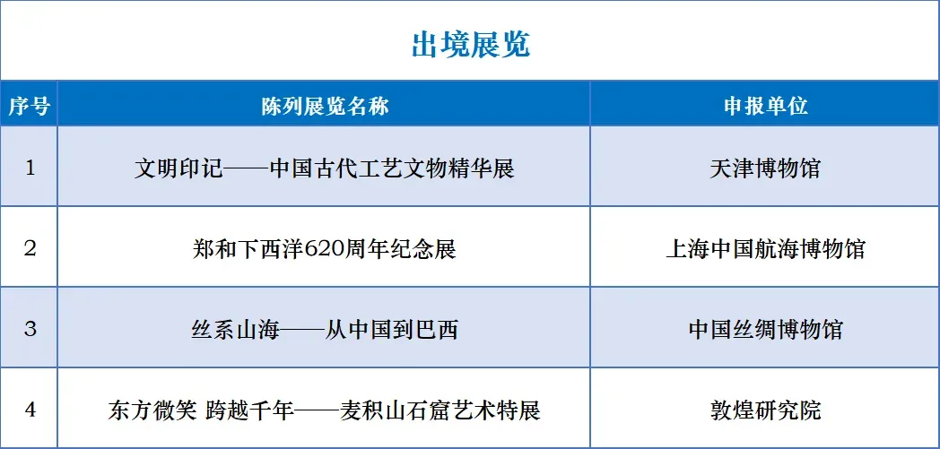 第二十三届(2025年度)全国博物馆十大陈列展览精品推介活动初评会于3月26日至28日在京召开。根据《全国博物馆十大陈列展览精品推介办法》,通过审阅申报材料、观看申报项目视频、讨论交流、实名投票等环节,初评评委会对150项申报项目进行了审核、遴选。经国家文物局核准,共计38项展览入围终评,其中境内展览30项,出境、入境展览各4项。现将入围终评项目向社会公示(名单附后)。