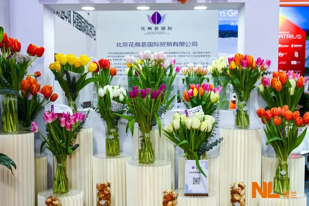 作为本届展会的重要参展力量,花乡花木集团旗下北京花商荟国际贸易有限公司携优质球根花卉新品亮相,展期持续3天。现场集中展出与荷兰深度合作的郁金香、风信子、洋水仙、蜡封朱顶红等进口精品,以及国泰、橙汁、初心、米鲁兹等十余款自主培育郁金香新品种,凭借优异品质与创新品种吸引海内外客商广泛关注。
