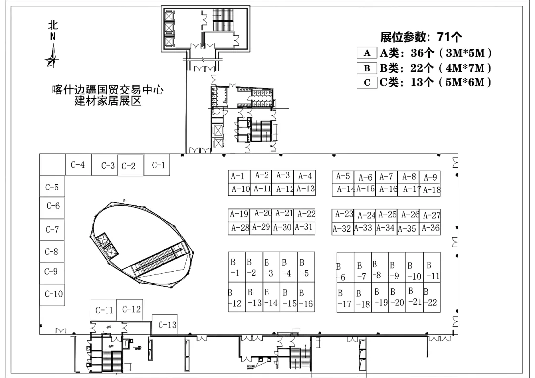 第十六届新疆喀什・中亚南亚商品交易会喀什边疆国贸交易中心总体分布图