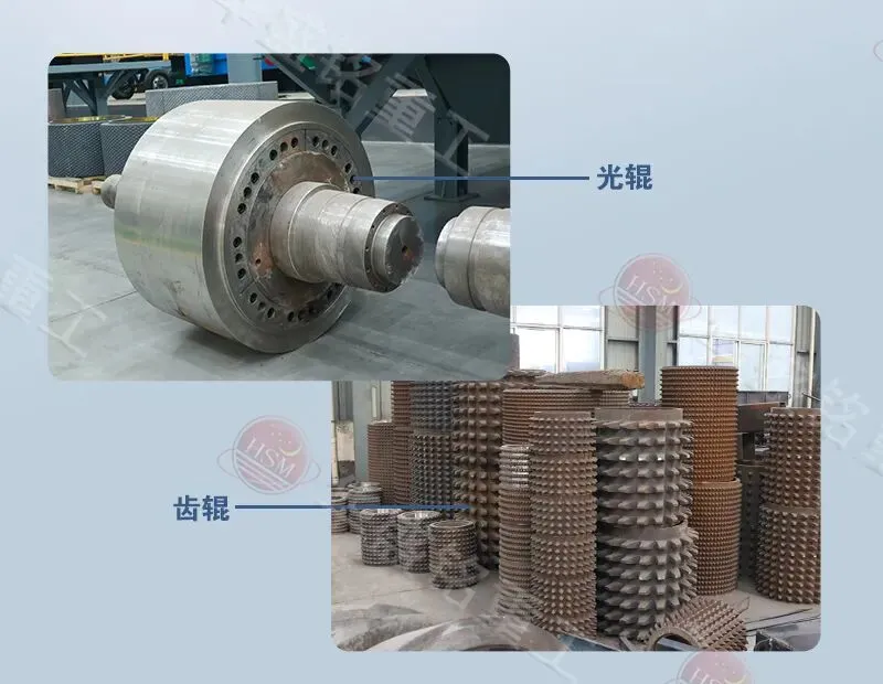 合理的辊面配置是实现一次成型的核心。建议采用“上齿下光”组合:上辊使用狼牙齿或鹰嘴齿结构,增强对大块物料的抓取力和劈裂效果;下辊则采用高精度光辊,表面经过磨削处理,粗糙度低,确保在挤压过程中粒度均匀、无二次破碎。