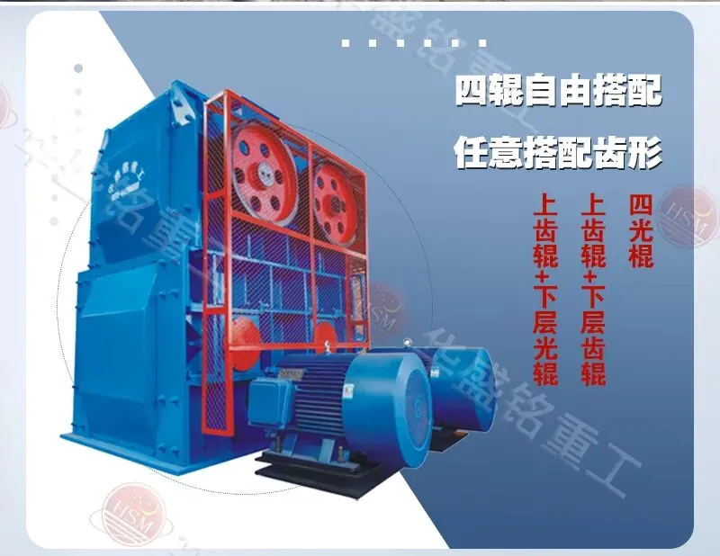四辊破碎机内部设有两对平行布置的辊子:上部一对通常为齿辊,用于粗碎;下部一对多为光辊或微齿辊,负责精碎。物料首先进入上辊,在咬合与剪切作用下被初步破碎至20–30毫米;随后落入下辊,在高压挤压下进一步细化。关键的是,通过调节下辊之间的间隙(最小可调至0.5毫米),能够控制最终出料粒度,稳定产出1毫米以下的成品。