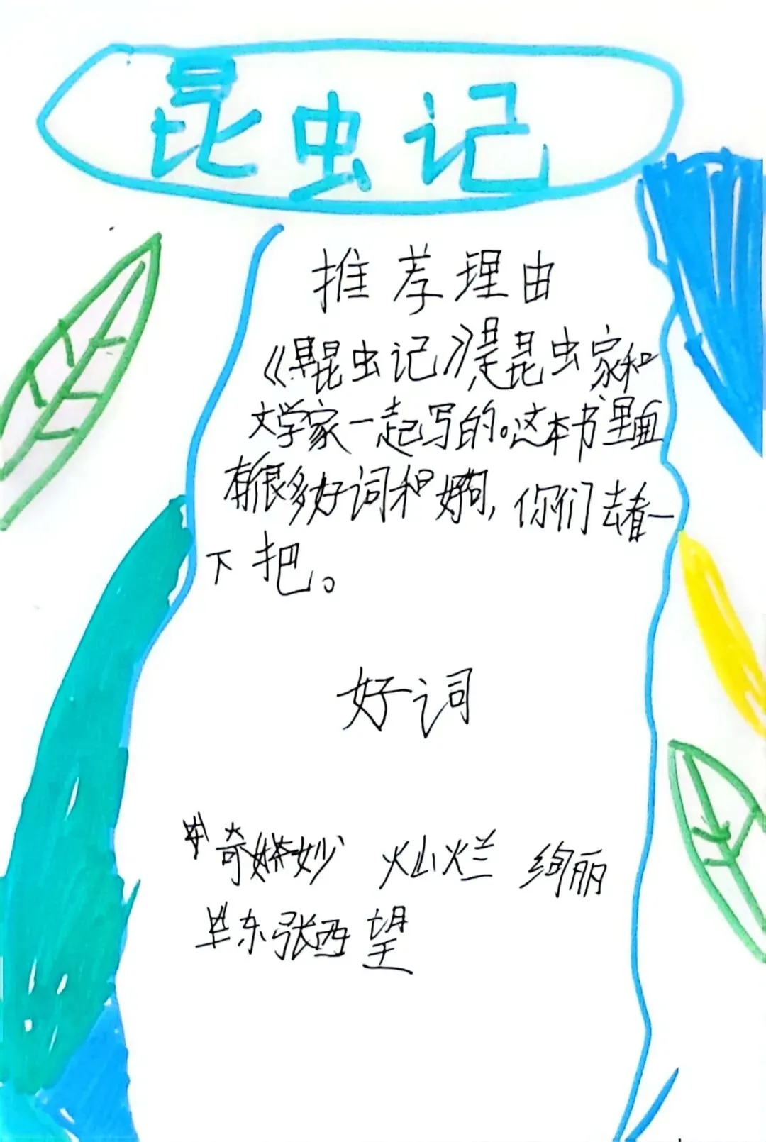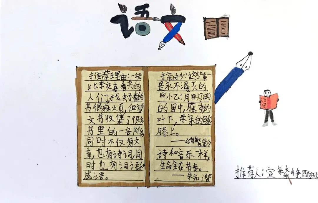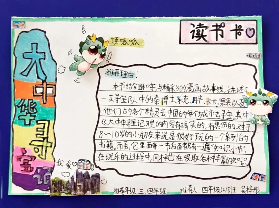 你喜爱的书是如何吸引你的呢?是有趣的书名、精美的插图还是动人的故事?快来制作好书推介卡,把好书分享给大家吧。