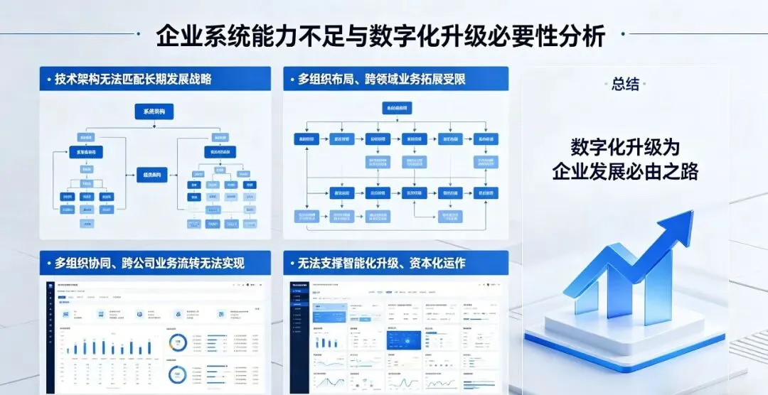 除了业务端的核心痛点,原有系统的技术架构已完全无法匹配荣耀健康的长期发展战略。企业要落地多组织布局、拓展跨领域业务,原有系统对复杂业务场景的覆盖能力极其有限,多组织协同、跨公司业务流转根本无法实现,更无法为企业后续的智能化升级、资本化运作提供数据和系统支撑,数字化升级已成为企业发展的必由之路。