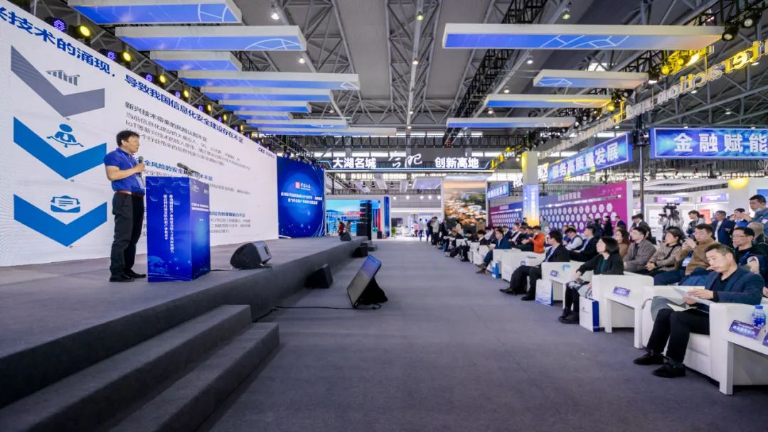 展会期间,公司创新中心产品合作总监刘鹏参加了展会大型路演活动并发表题为《态势感知与指挥管控平台》的主题演讲,分享了从安全日志获取、综合关联分析到整体态势安全展示的全流程平台体验。