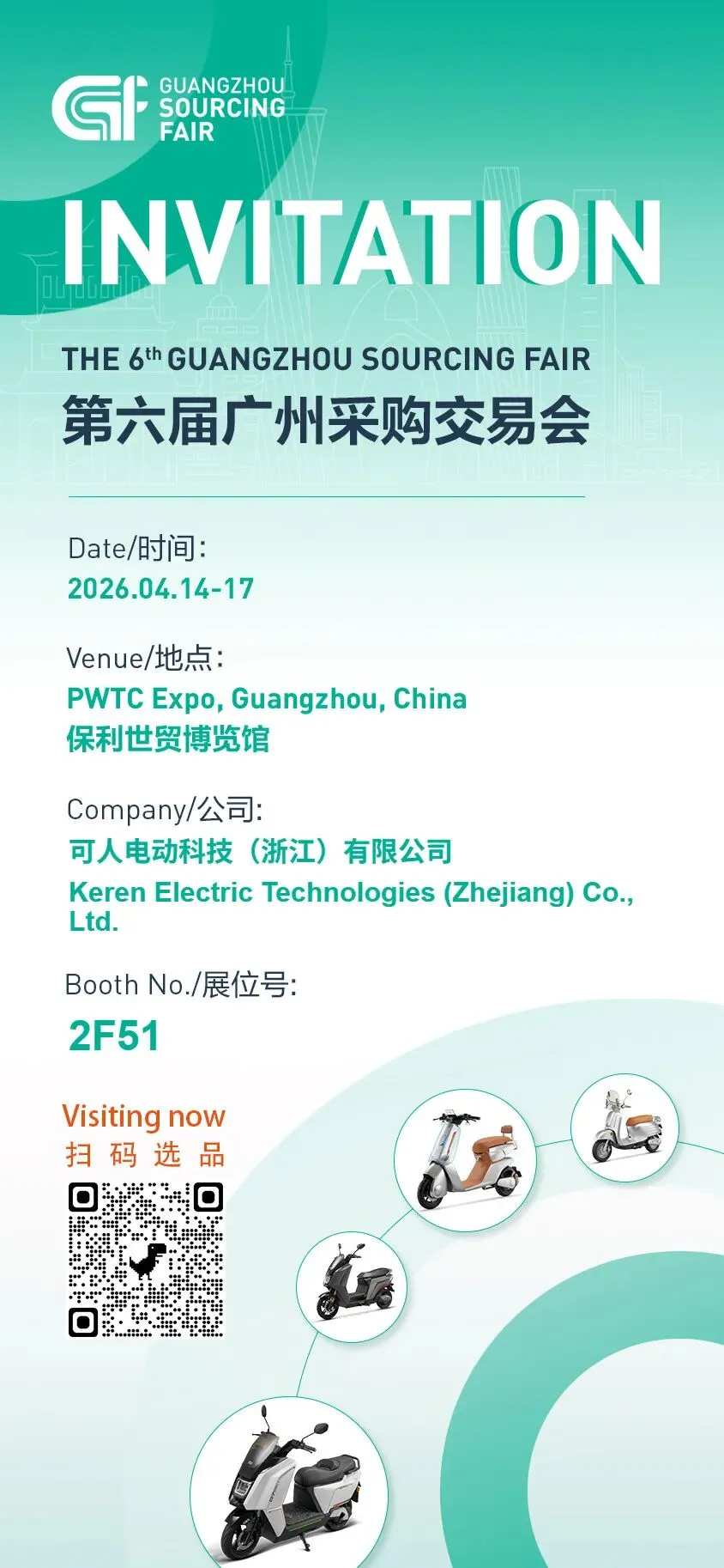我们珍视每一场与行业伙伴、消费者的相逢,渴望在交流中碰撞出创新火花,携手推动电动出行行业迈向新高度。4月展会即将启幕,诚邀您拨冗莅临可人电动展位参观洽谈,一同解锁电动出行新未来!关注公众号,更多可人电动展会精彩资讯抢先知。